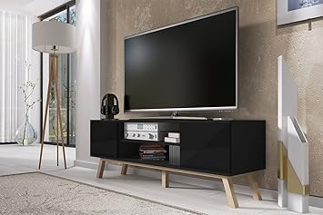 Vero Bois Meuble Tv Moderne 150 Cm Corpus Noir Mat Front Noir